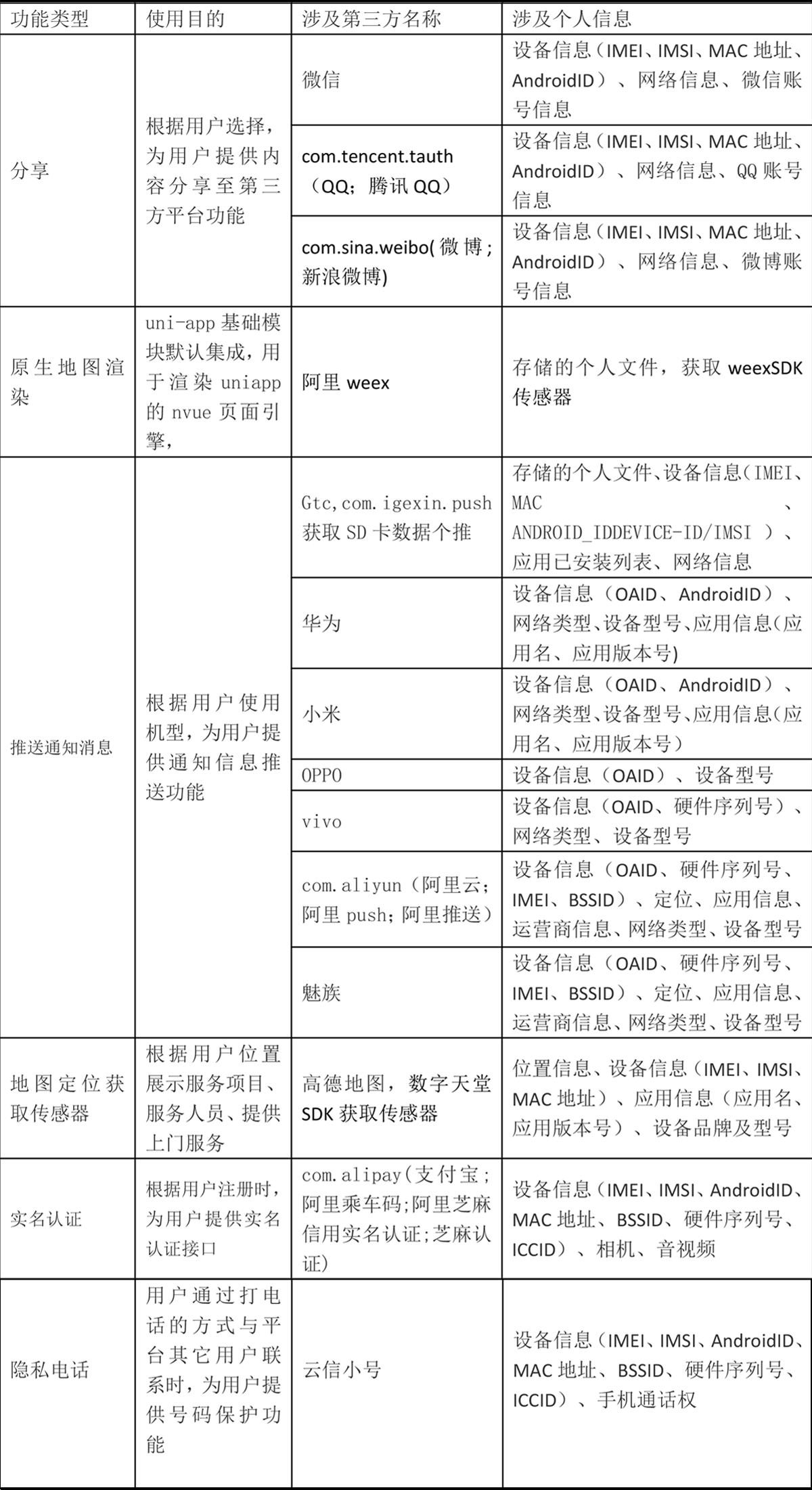 我们使用的第三方软件工具开发包(SDK)信息如下: